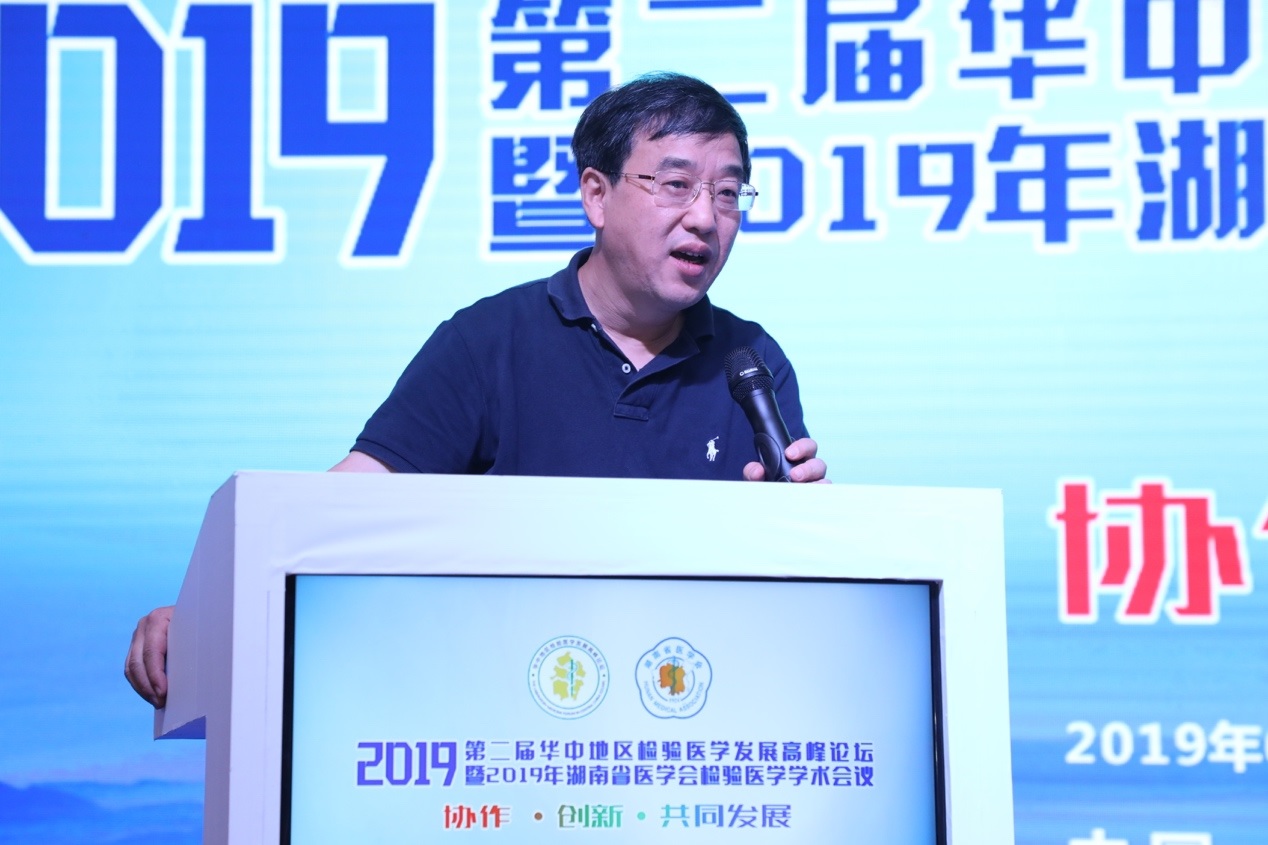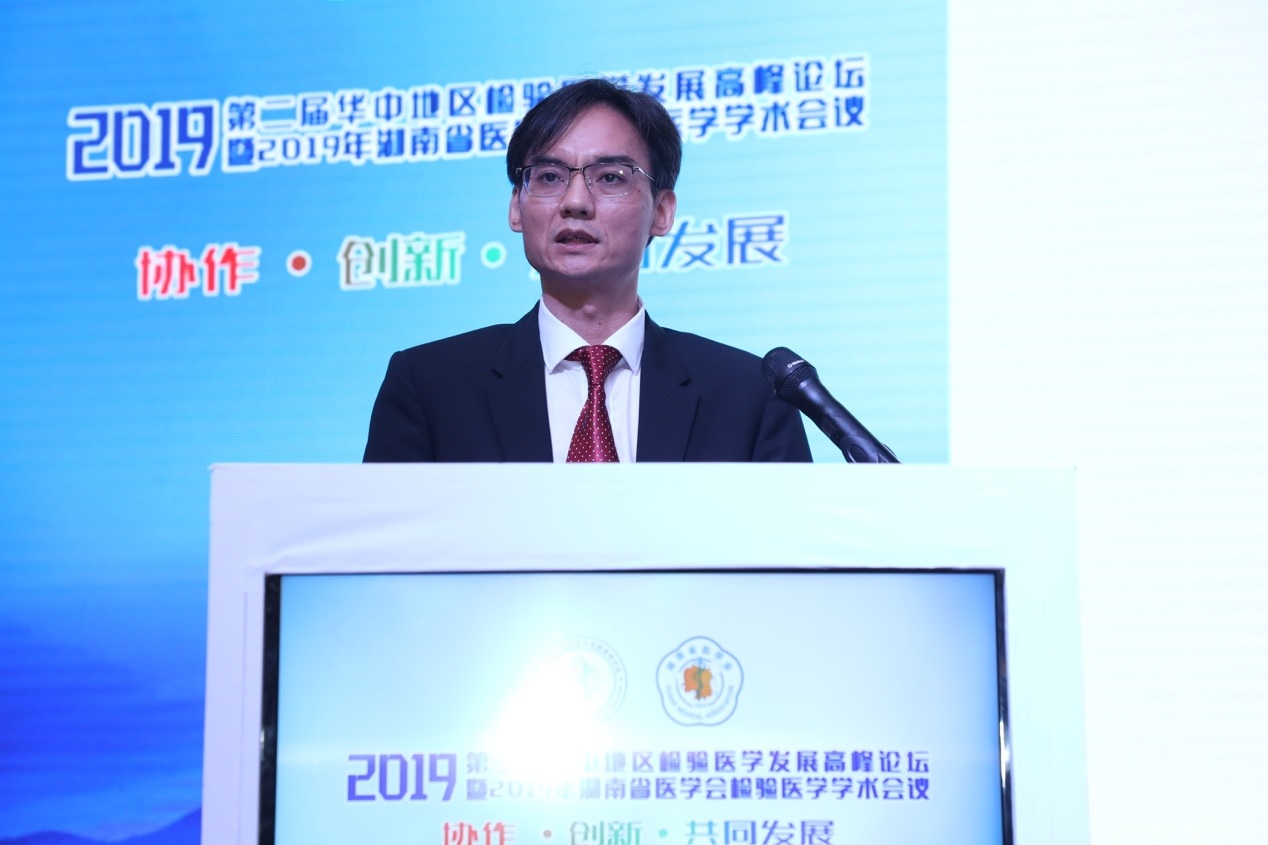 湖南省醫(yī)學會檢驗專業(yè)委員會主任委員,中南大學湘雅三醫(yī)院檢驗科主任,伍勇教授代表湖南省醫(yī)學會檢驗專業(yè)委員會致辭并熱忱歡迎各位與會同仁來到文化名城長沙學習。