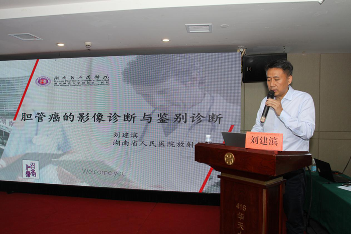 湖南省人民醫(yī)院放射科主任、湖南省醫(yī)學(xué)會(huì)放射學(xué)專業(yè)委員會(huì)副主任委員兼腹部學(xué)組組長劉建濱教授致辭并做專題學(xué)術(shù)報(bào)告